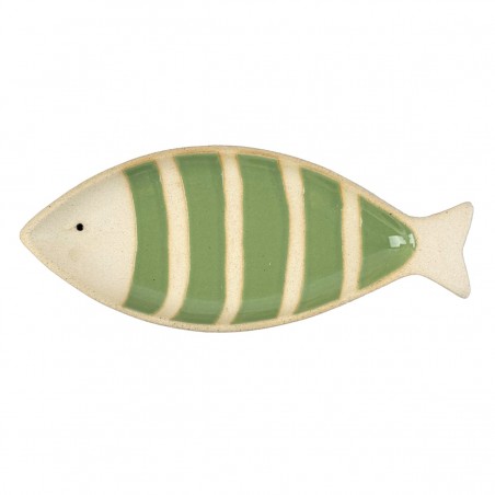 Plateau de service POISSON en céramique couleur Vert et écru 23cm