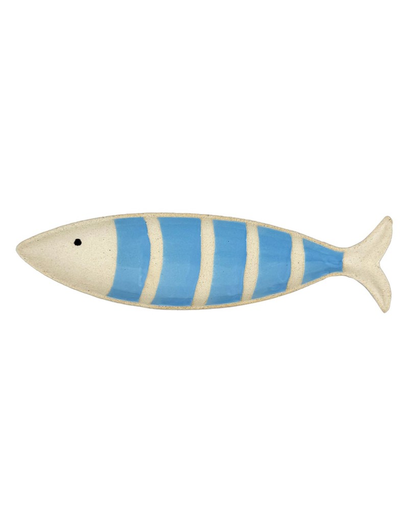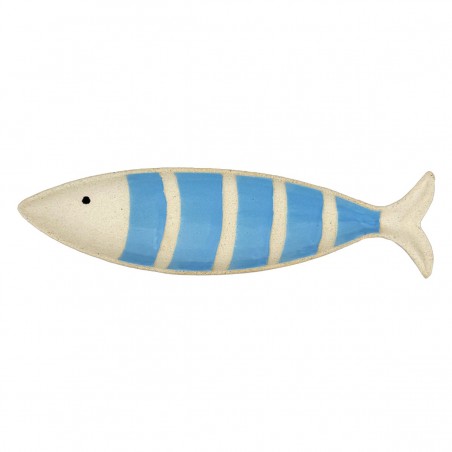 PLATEAU en céramique en forme de Poisson de 19cm couleur Bleu écru