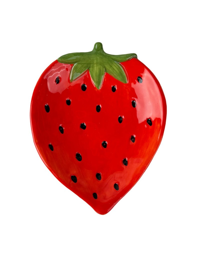 PLAT Coupelle en céramique en forme de FRAISE couleur rouge 13cm