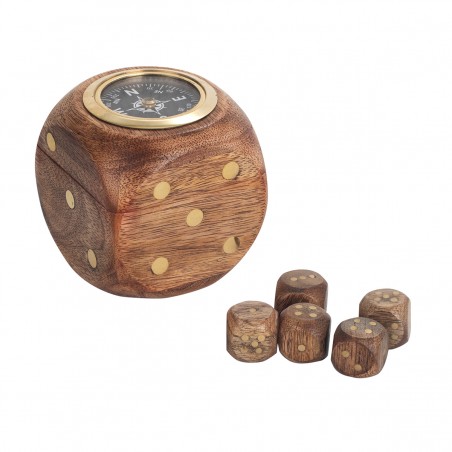 Coffret Boite pour jeu de dés en forme de Dé avec Boussole en laiton