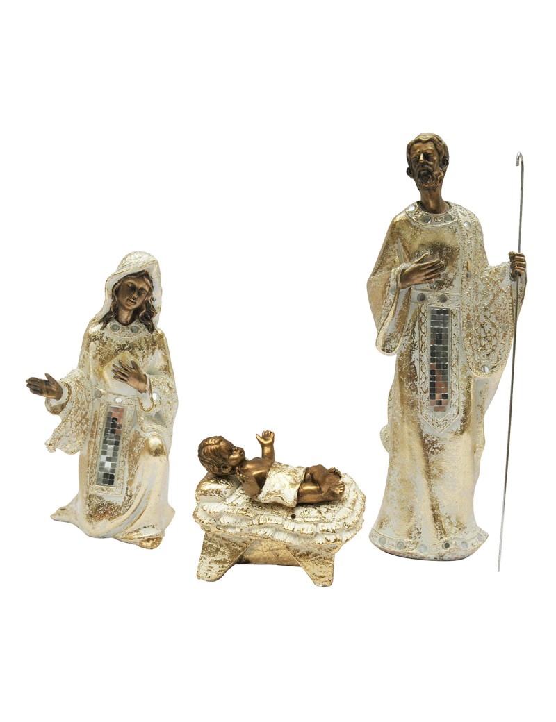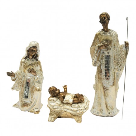 Crèche de Noël 3 personnages couleur écru doré de 29cm