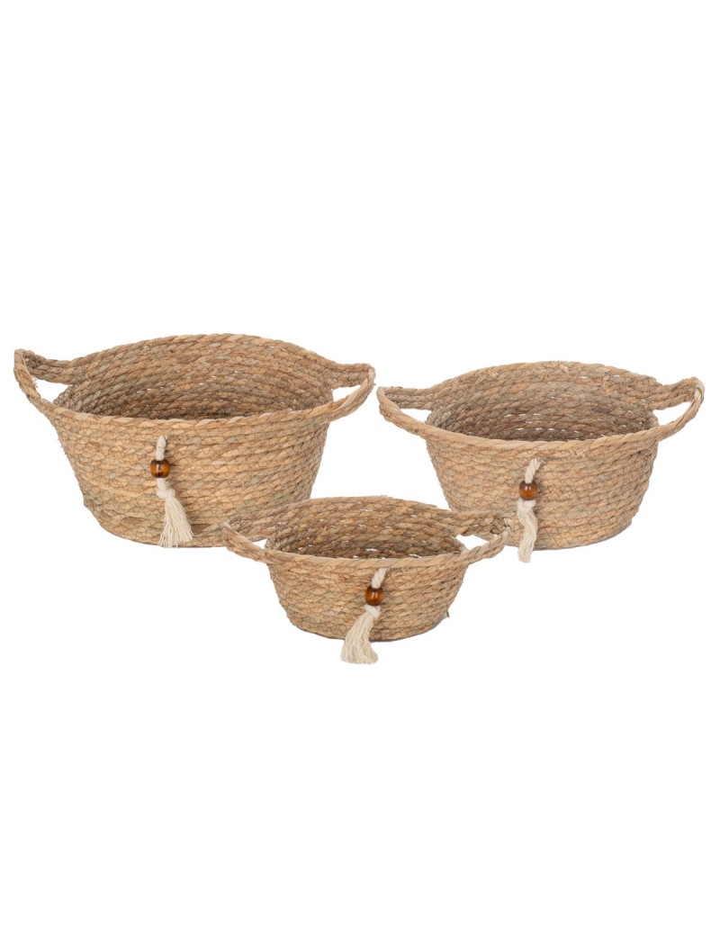 Set de 3 paniers gigognes de taille ronde ovale, fabrication Jonc de Mer Algue, couleur naturel.