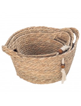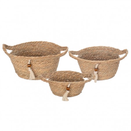 PANIERS gigognes Set de 3 en jonc de Mer forme Ovale 34cm avec poignées.