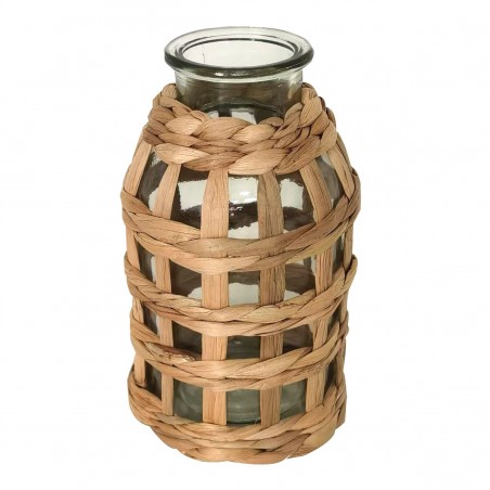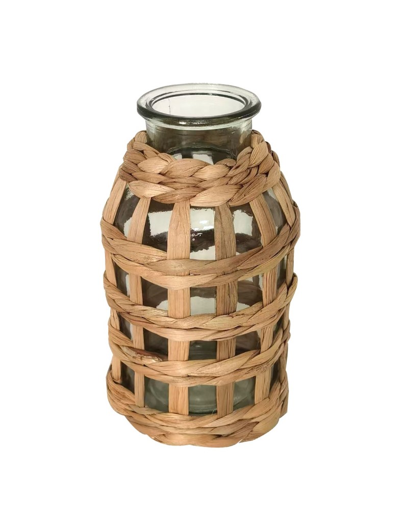 VASE POT 20cm en Verre avec une décoration fibre naturelle Jonc de Mer