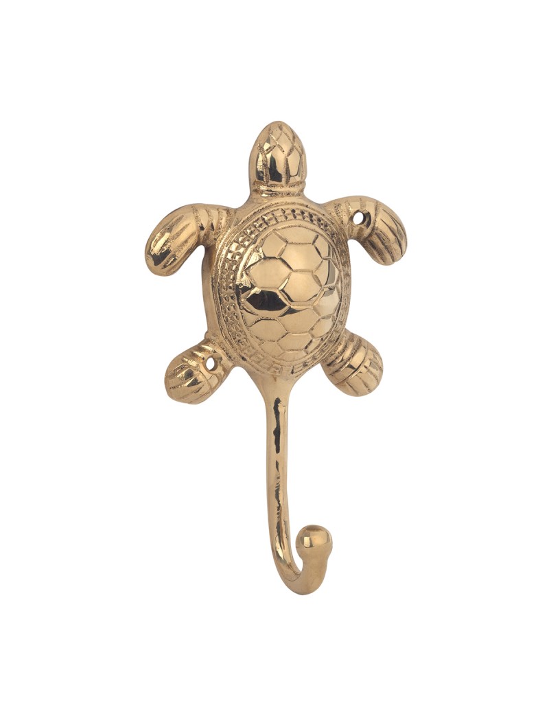 Patère murale en Laiton 1 crochet Décoration Tortue de Mer 15cm