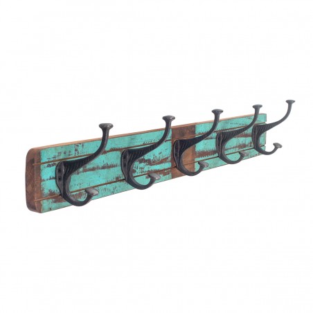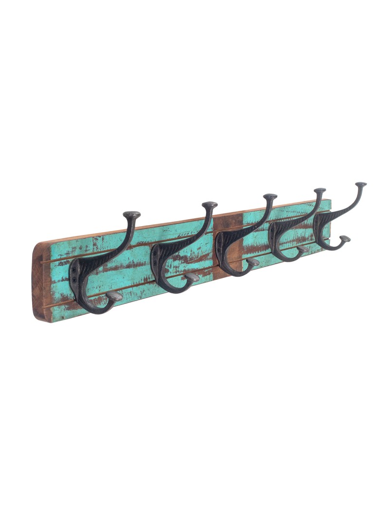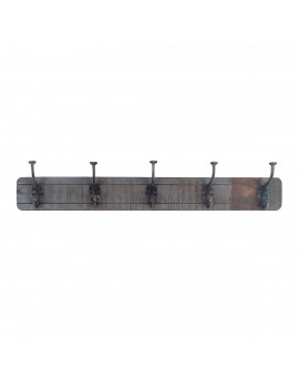 Patère en bois avec 5 crochets métal Décoration effet vieilli Vintage de 70cm