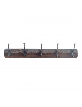 Décoration murale style Atelier Industriel, Patère en Bois de 70cm de long avec 5 crochets en métal.