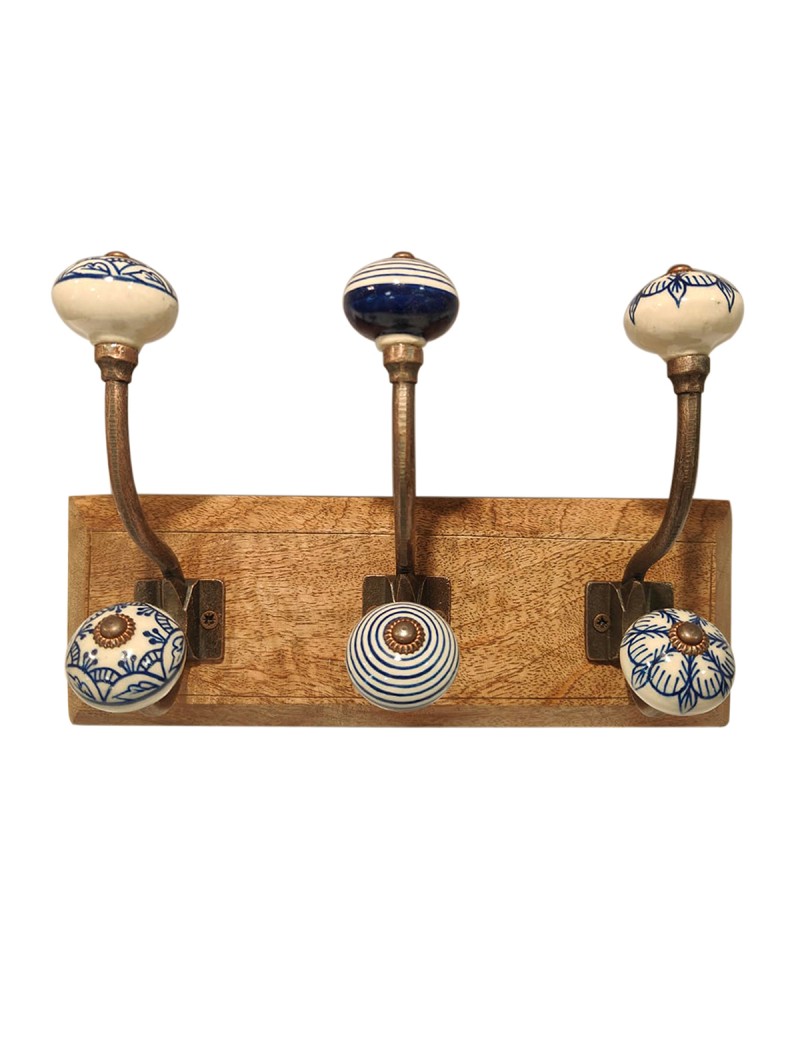 Patère en Bois et métal de 30cm de longueur avec 3 crochets design rustique