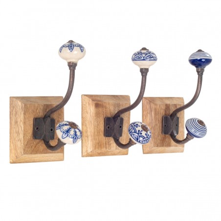 Patère en Bois et métal avec 1 crochet Décoration rétro 18x12x10cm