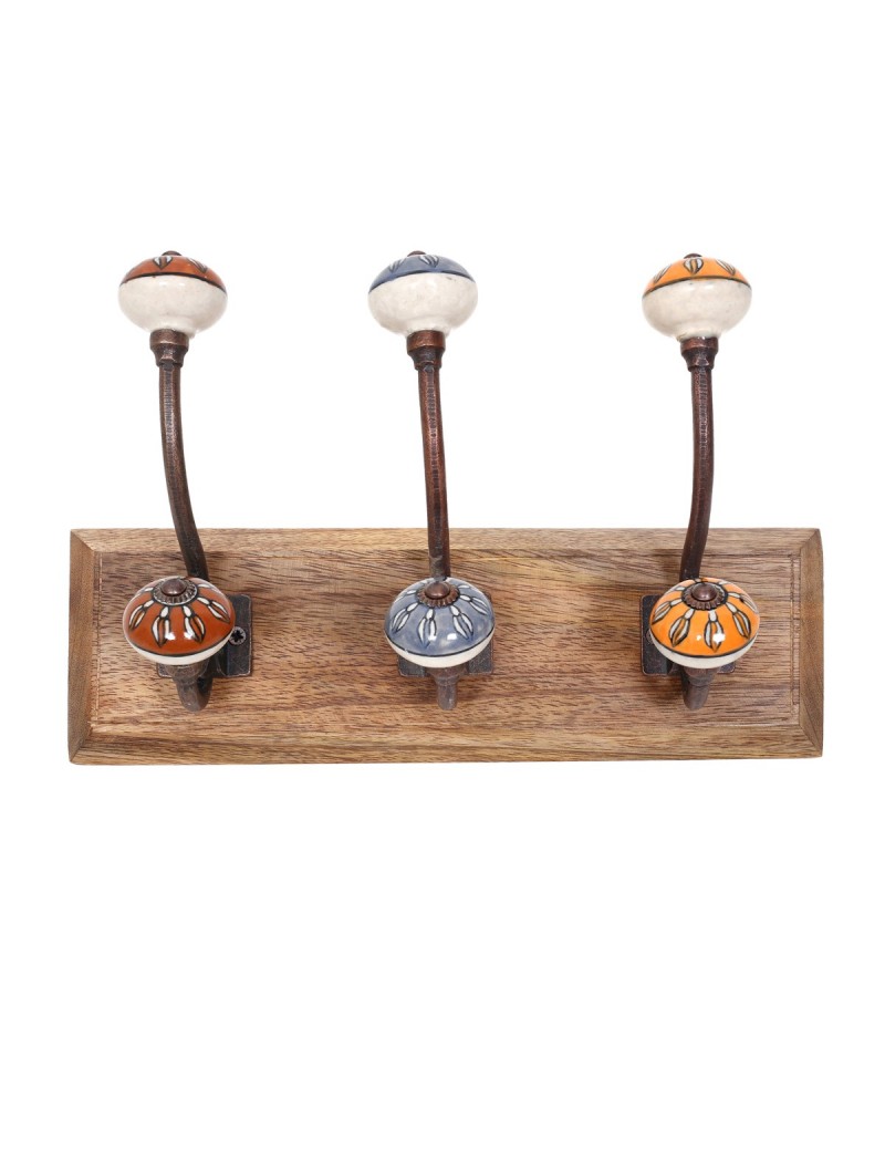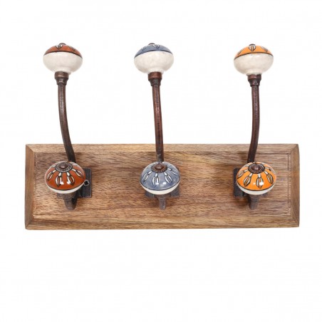 Patère en Bois et Métal avec 3 Crochets de différente couleur Décoration Vintage