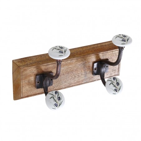 Patère en Bois et Métal avec 2 crochets en métal Décoration Olivier