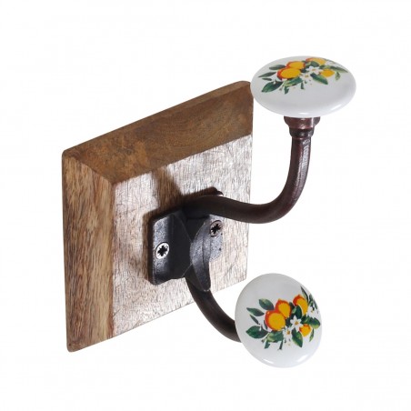 Patère en Bois et Métal avec 1 crochet Décoration Citrons