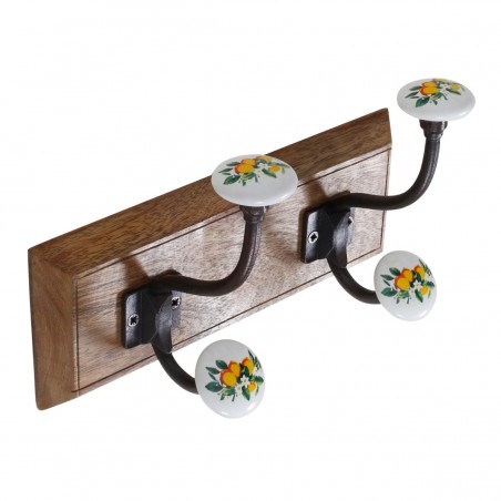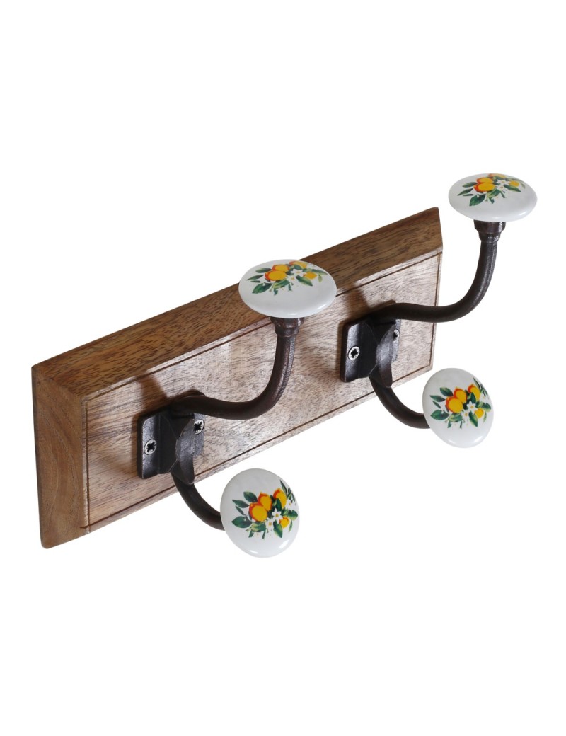 Décoration style Provence pratique, Patère en Bois avec 2 crochets en métal Design Citrons et Fleurs.