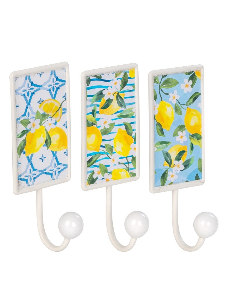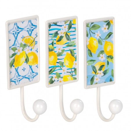 Patère 18cm en métal Blanc avec 1 Crochet Décoration citrons Méditerranée