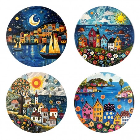 Sous-verre petites maisons 4 diff.