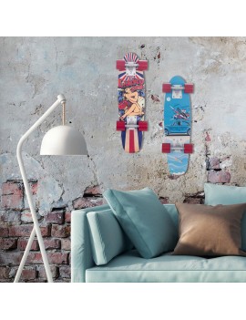SKATE Décoration murale en Bois et métal couleur Bleu Rouge 55cm