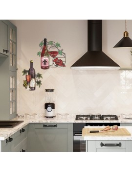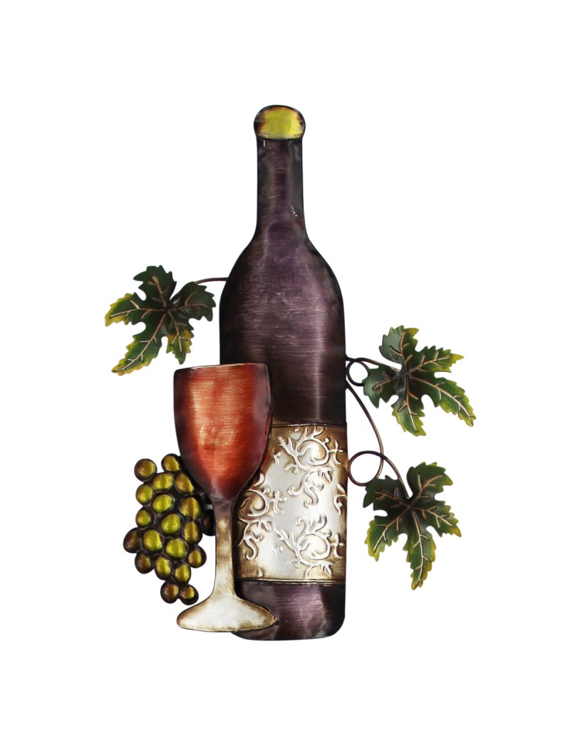 Décoration murale d'Intérieur collection Vin Bouteille dégustation, vigne raisins, applique en métal de 47cm.