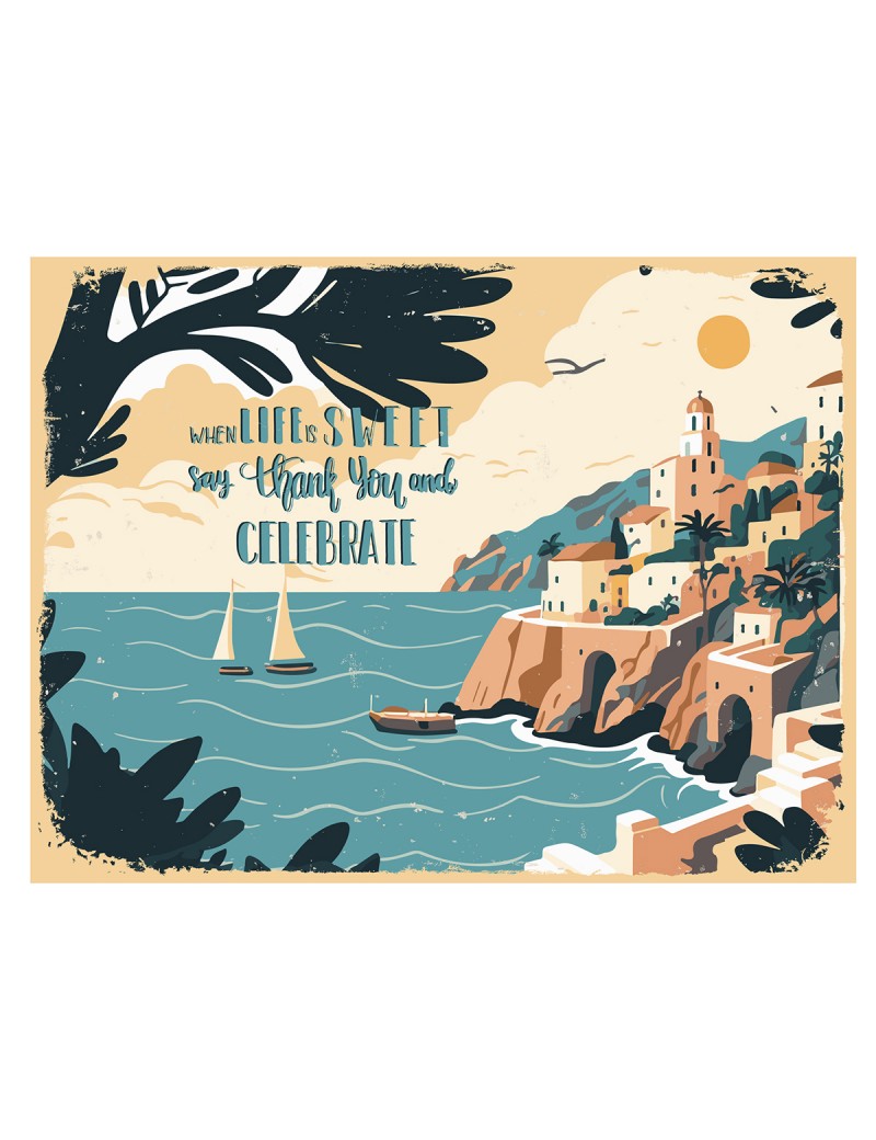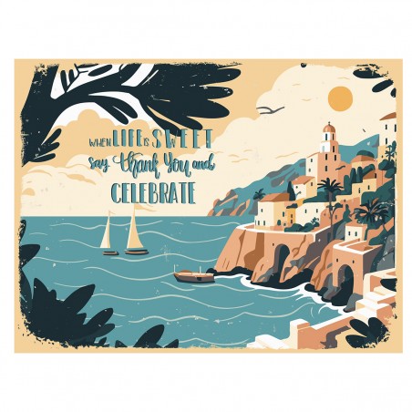 Décoration murale enseigne rétro Plaque en métal, Bord de Mer Méditerranée au soleil couchant.