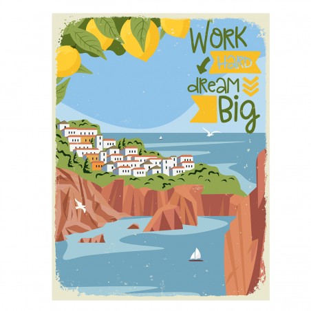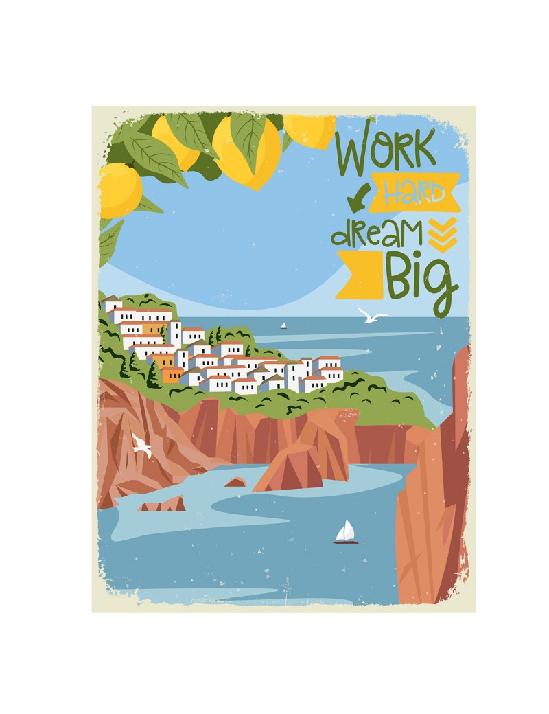 Décoration murale Méditerranée et Citrons, plaque en métal de 33x25cm à suspendre.