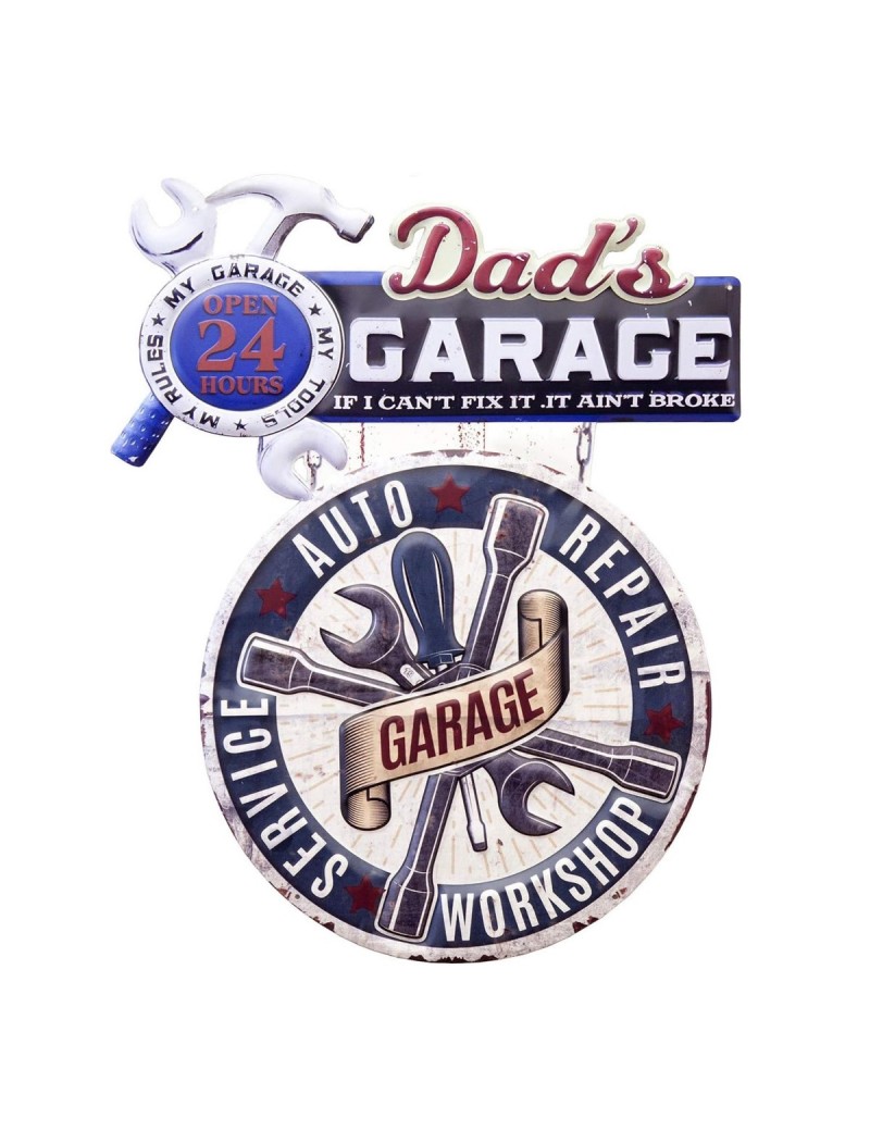 ENSEIGNE Plaque métal Garage Dads Papa Vintage décoration mécanique en léger Relief 60cm à Suspendre
