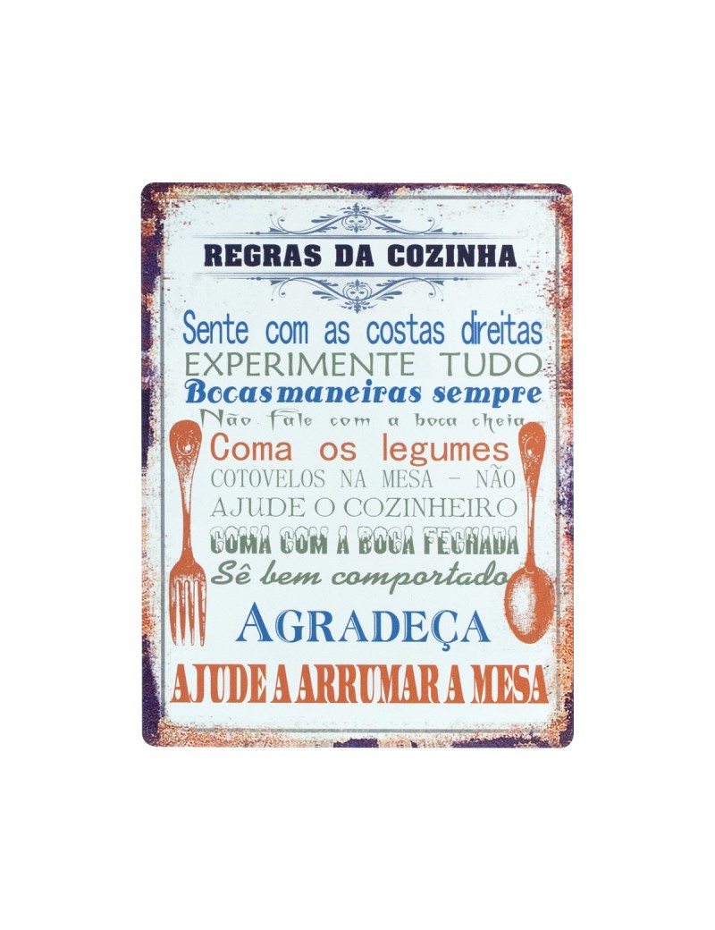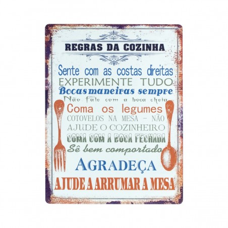 PLAQUE Murale en Métal Règles de la Cuisine en Portugais