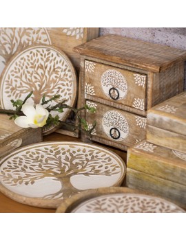PLATEAU de Présentation en Bois Set de 2 Décoration Arbre de Vie.