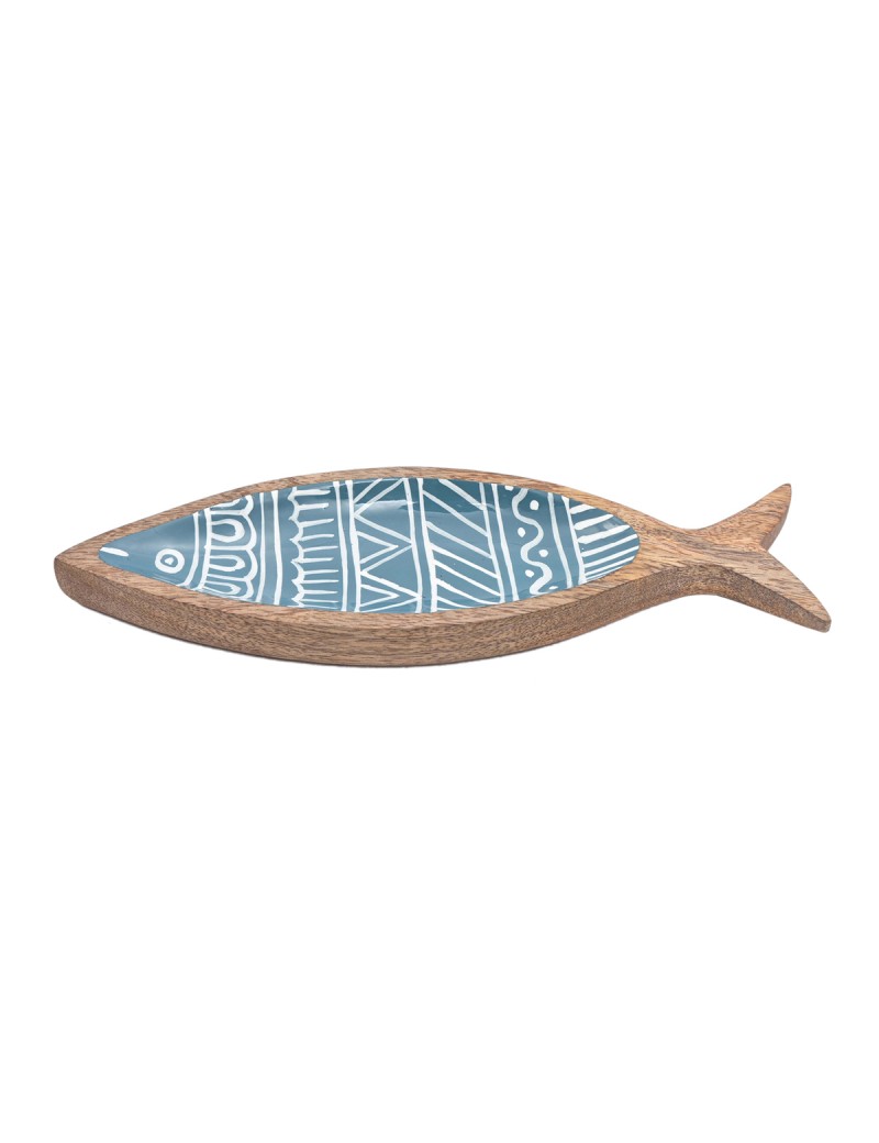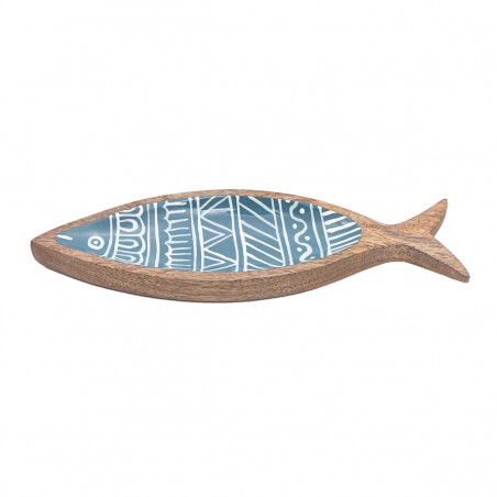 Plateau de présentation ou vide poche en forme de Poisson couleur Bois et Bleu Blanc.