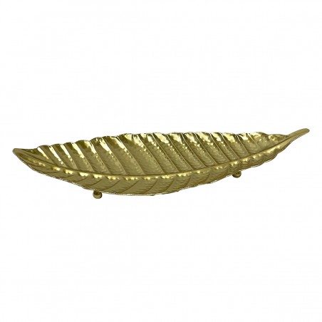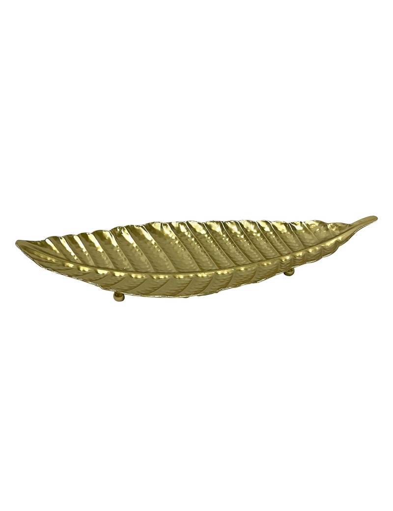 Grand plateau plat de présentation au Design Feuille couleur Or, de longueur 49cm.