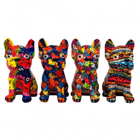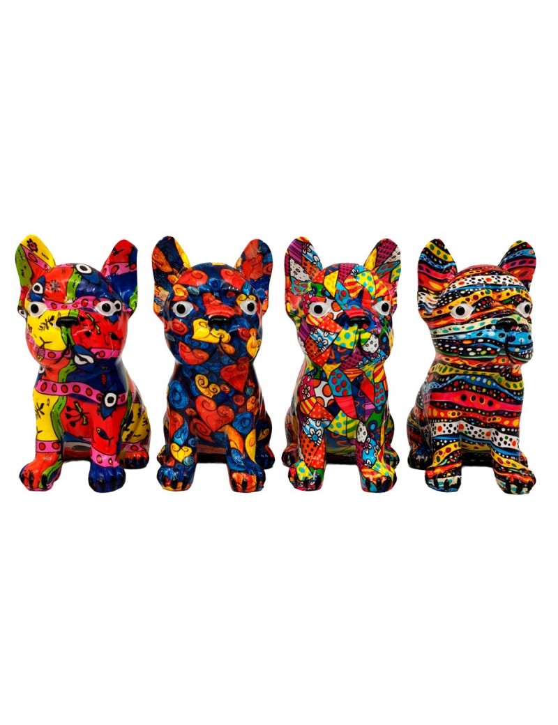 Statue de Chien Bouledogue assis couleur Design Pop Art de 12cm