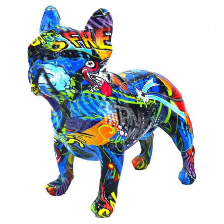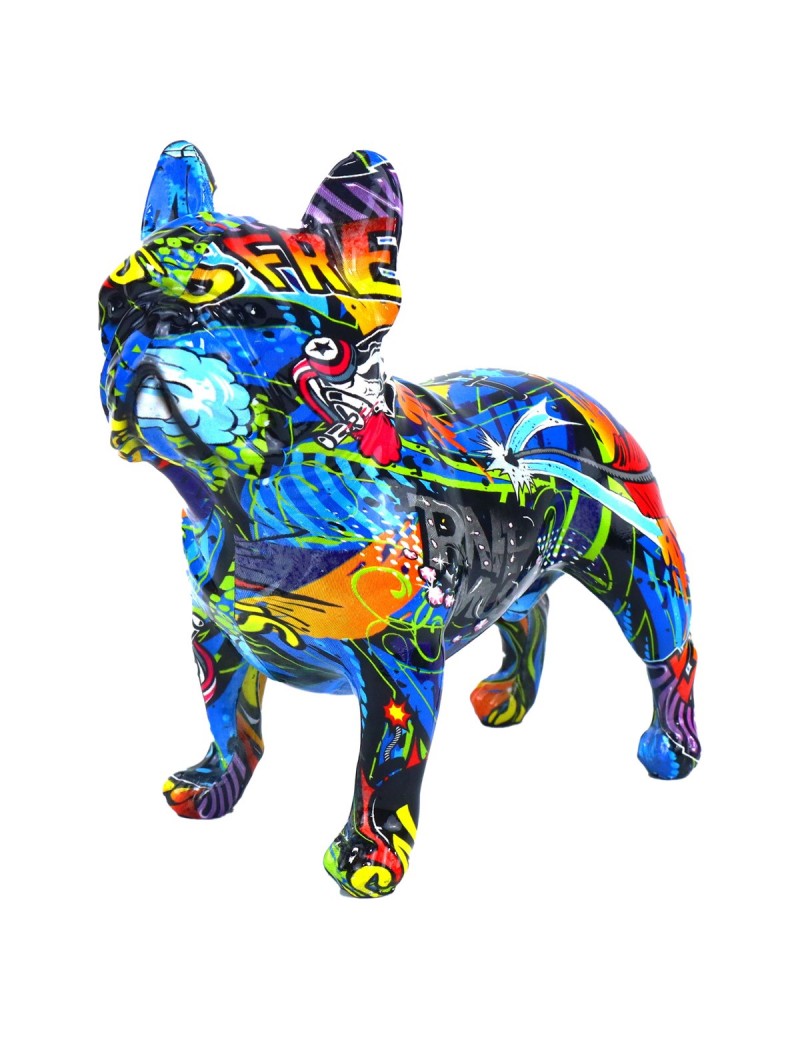 Chien Bouledogue Statue Décoration Design Graffiti Bleu 16x15cm