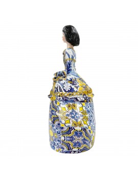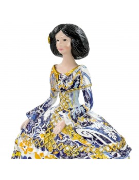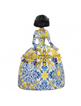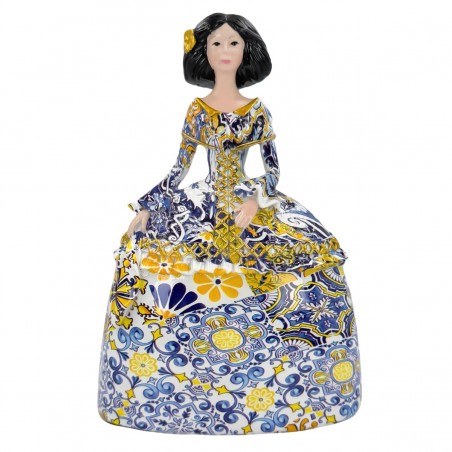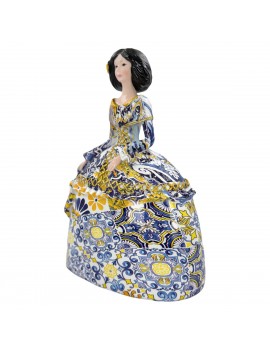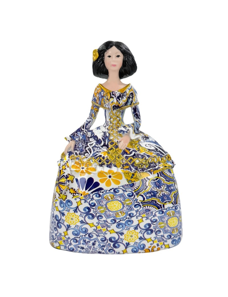 Décoration esprit Baroque Méditerranée, statue de Ménine 20cm robe Bleu jaune Or