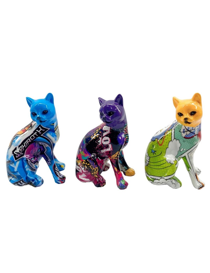 CHAT assis Statue Décoration Design couleur Graffiti Tag de 10cm