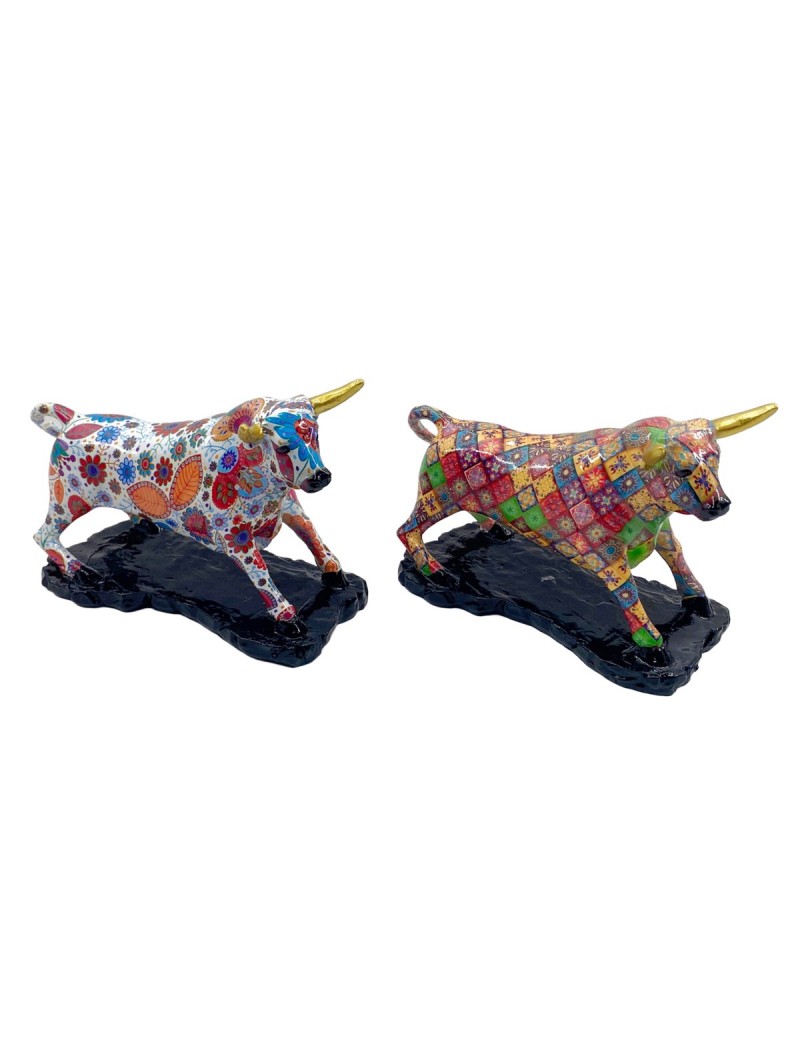 Taureau Statuette Décoration de 16cm Design Patchwork et Fleurs