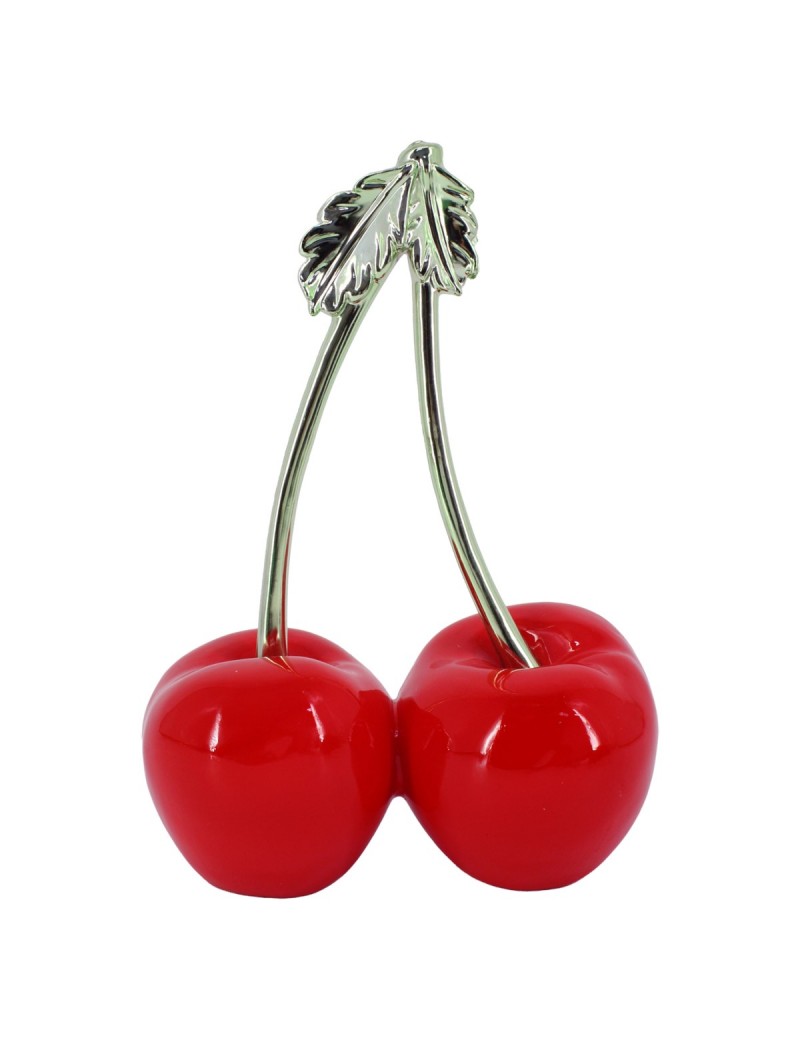 CERISES Statue 24cm Décoration couleur Rouge et Argent