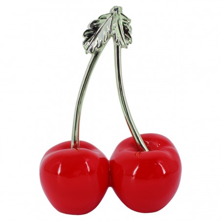 Décoration Fruits Design, statue de 24cm de Cerises couleur rouge vif avec Queue Argent.