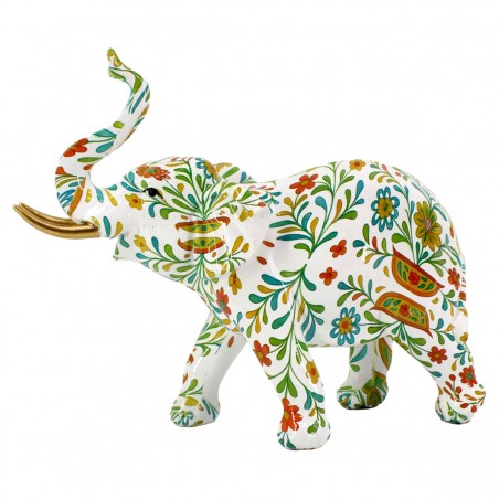 Éléphant Statue 22cm Décoration couleur Blanc ornement Fleurs Printemps été