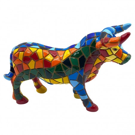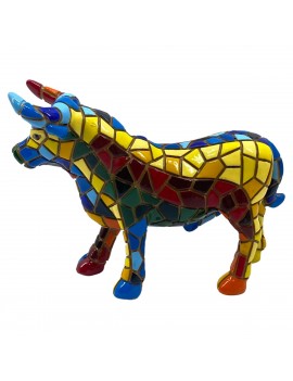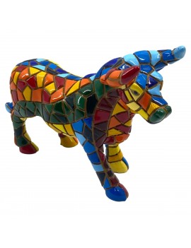 TAUREAU Statuette Décoration de 12cm Design Mosaïque multicolore