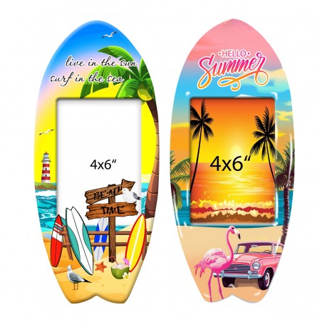 Décoration Vacances évasion à la Plage, Cadre photo en forme de Planche de Surf de 31cm.