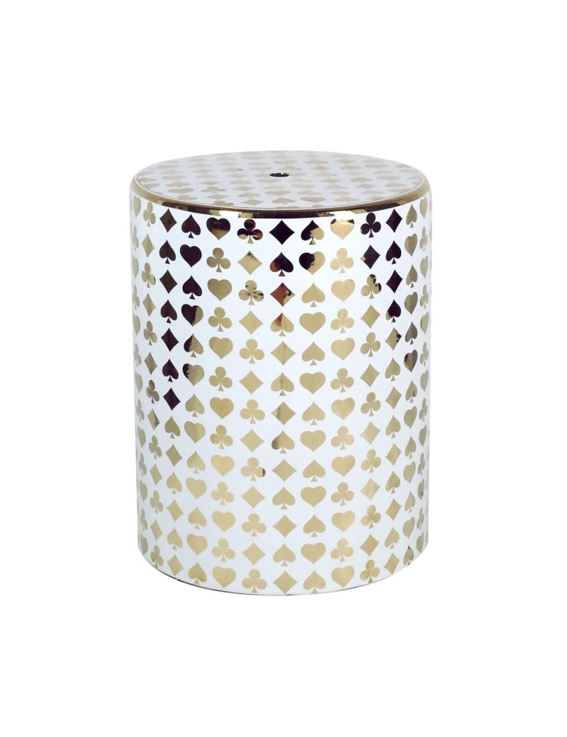 Tabouret rond en céramique couleur Blanc et Or Décorations trèfle coeur pique