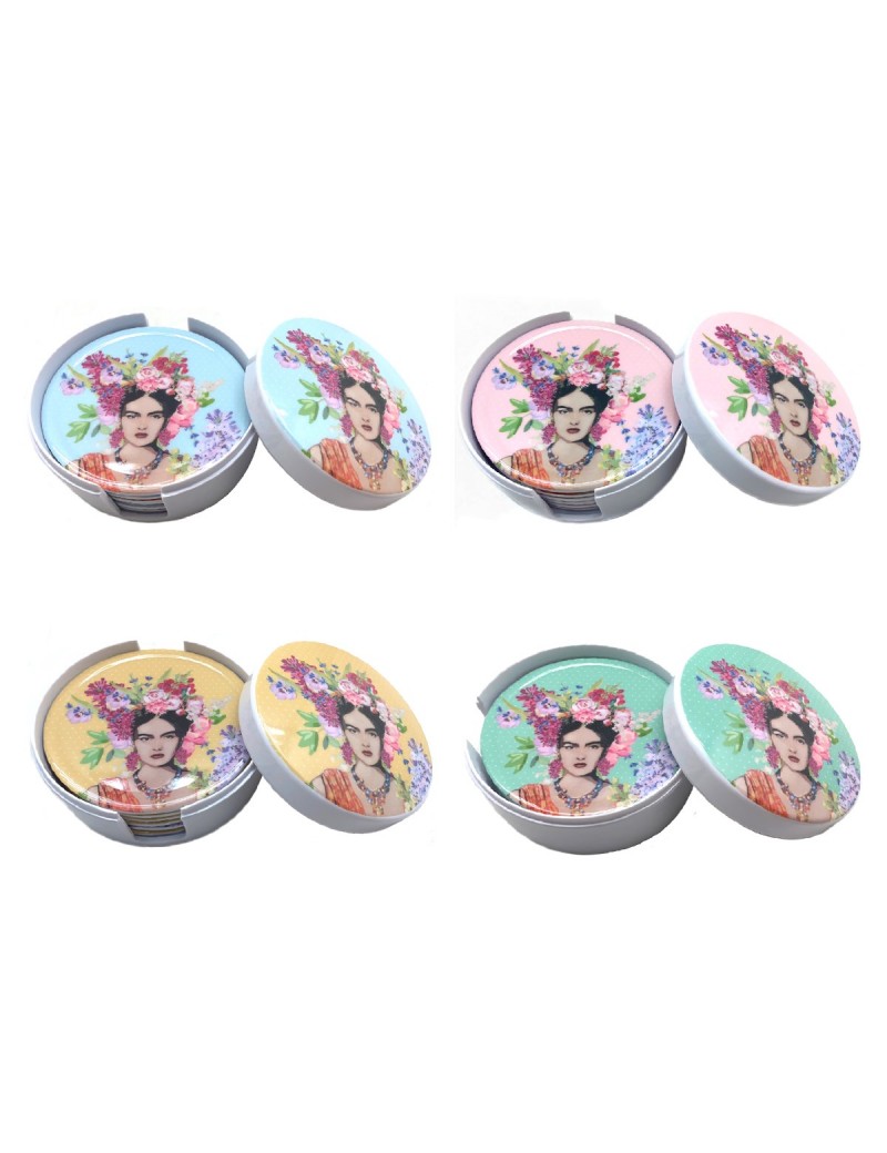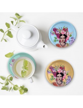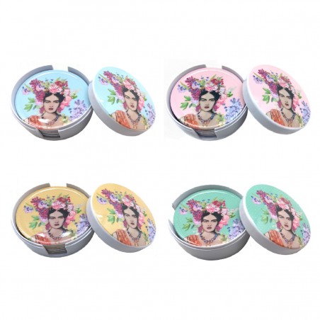 Sous Verre en Couleur Coffret de 6 Décoration Frida couleur Ciel Moutarde au choix