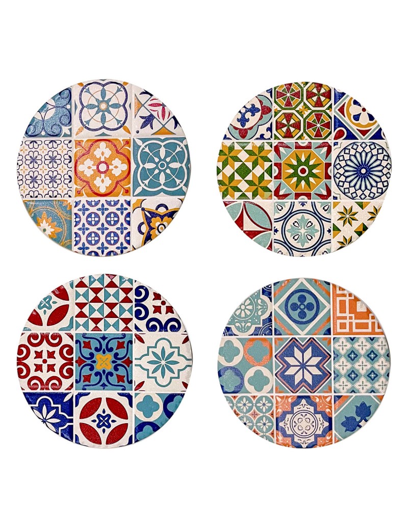 Décoration Cuisine Art de la table Design carreau de ciment Vintage, Sous verre rond en céramique pratique et Décoratif.