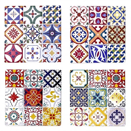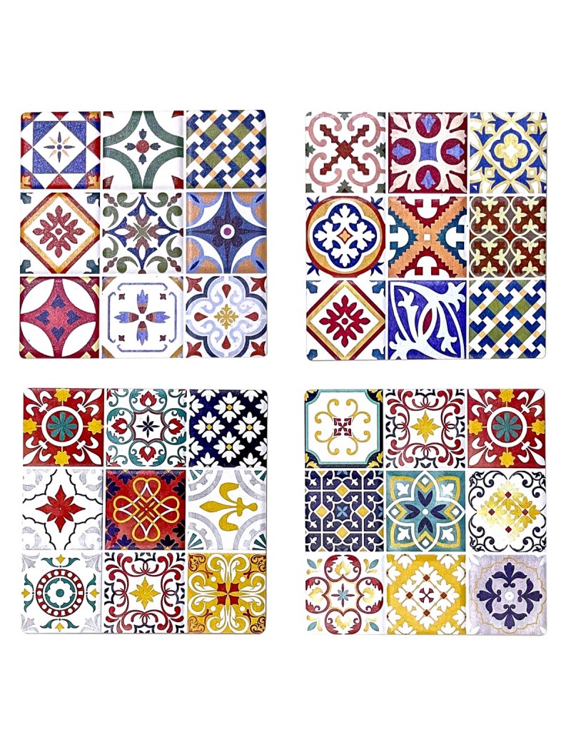 Décoration Cuisine Table d'Apéro en couleur, un Lot de 4 sous bock en céramique tout en couleur au Design Carreau de Ciment Faïence.