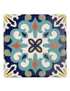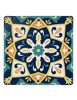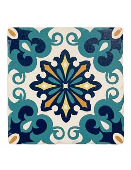 Décoration Art de la table Service tapas, Dessous de Verre carré en céramique, Design Carreau de Ciment à dominante Bleu.