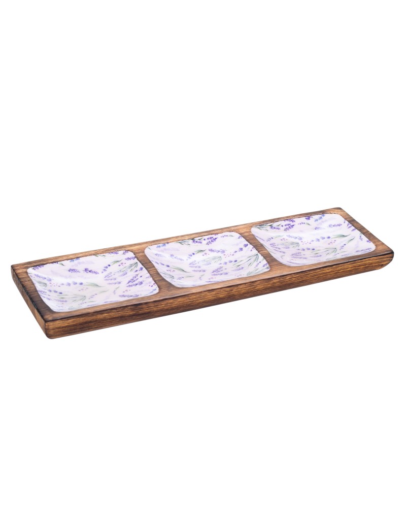 Plateau de service Tapas avec 3 compartiments Décoration Lavande de 36cm