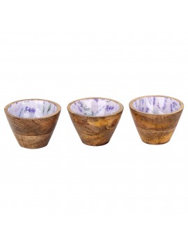 Décoration Art de la Table collection Provence, Plateau Service avec 3 Bols en Bois ornement Lavande Provence.