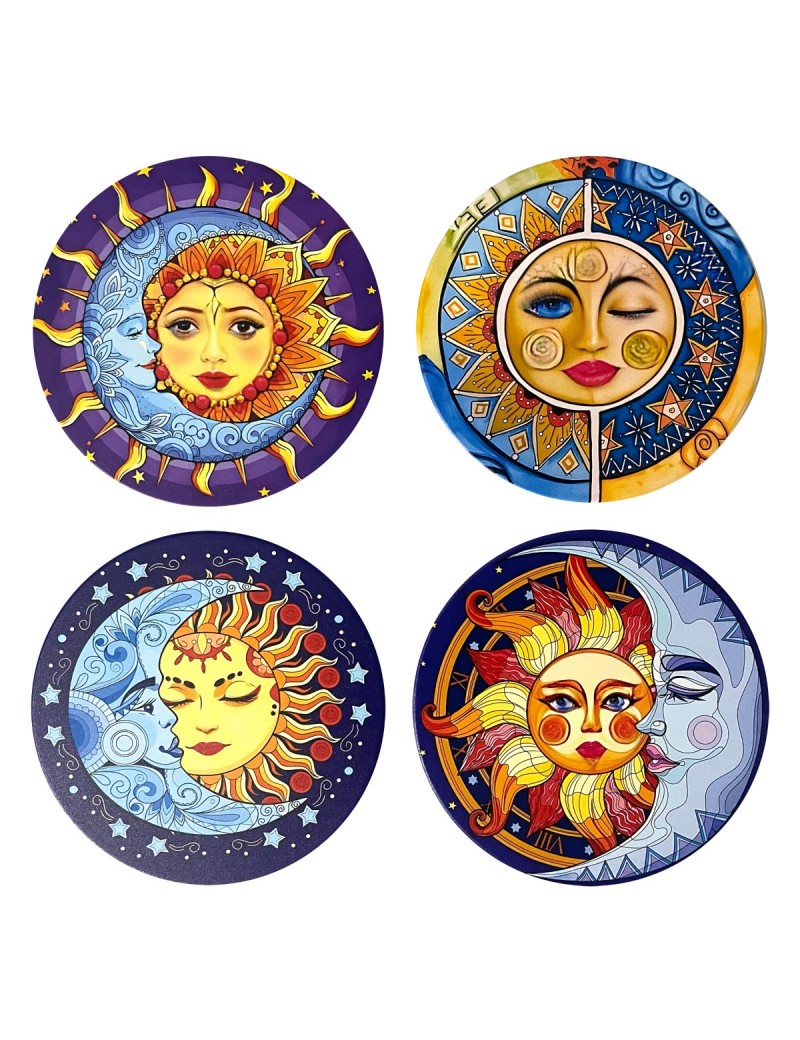Dessous de verre SOLEIL et LUNE en céramique Coloré de 10cm