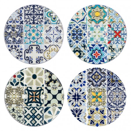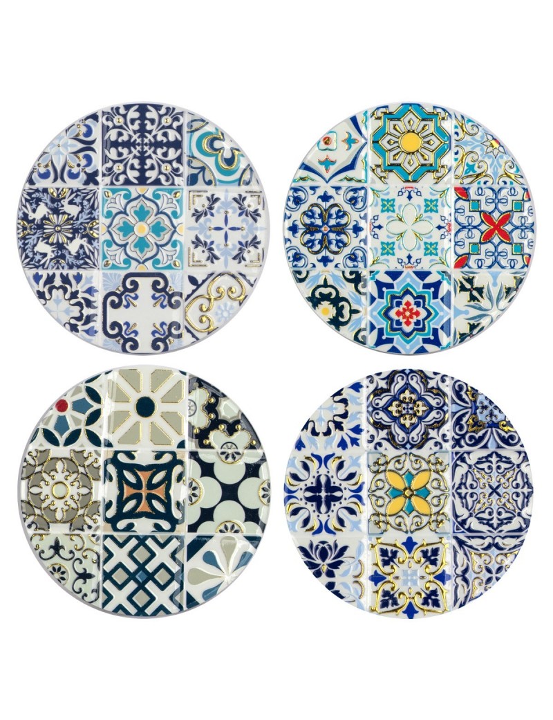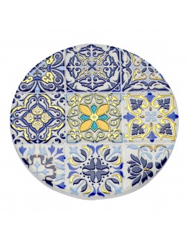 Sous Verre rond en céramique de 11cm Décoration Azulejos relief doré