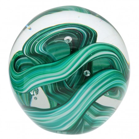Presse Papier collection sulfure en Verre au Design spirale "mouvement" couleur Vert Jade et blanc.