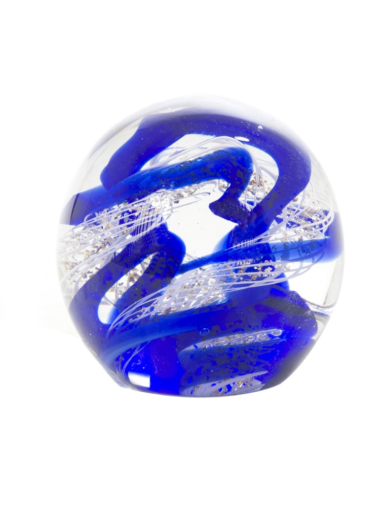 Sulfure Presse-Papier en Verre Design Bleu et Blanc de 8cm