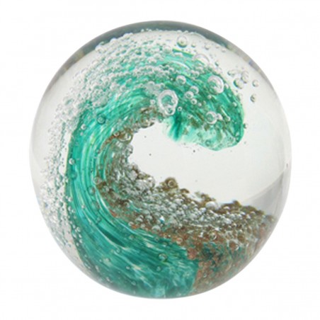 Sulfure Presse papier Boule en Verre Décoration Vague Bleu Vert 8cm.